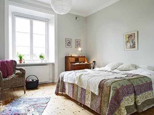 卧室的设计清新简单,白色墙面在这里一点也不单调,简单的装饰画完成墙面装饰,原木系的家具跟地板更是纯白墙面最好的点缀跟映衬。简单的被褥很舒服。两盏壁灯为阅读带来方便。