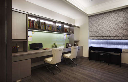 编辑推荐:以开放式的格局手法连结过道空间,作为书房安排,保留空间功能转换的灵活性与自由度。