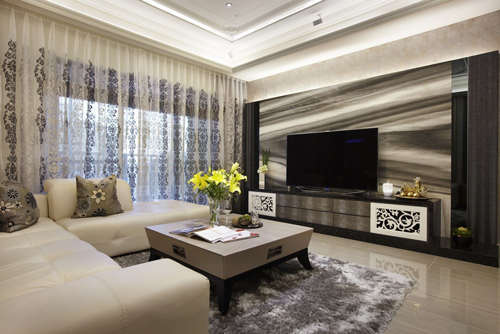 编辑推荐:同样选用天然石材作为主要风格铺陈,两侧以对称原则相衬的雷射雕花茶镜,为空间质感增添些许精巧。