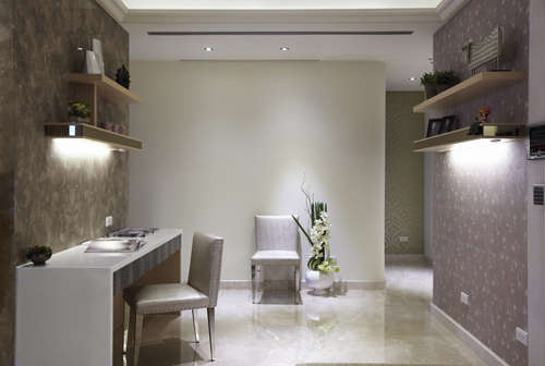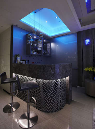 编辑推荐:原本建案中即有的畸零角落,延伸屋主对生活的想法,特别运用马赛克及石材,规划成休闲用途的吧台。