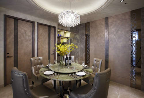 编辑推荐:保留既有的圆式餐桌,选用个人色彩鲜明的绷皮拉扣单椅点缀,以雅痞质感,诠释出混搭风格绝美精妙。