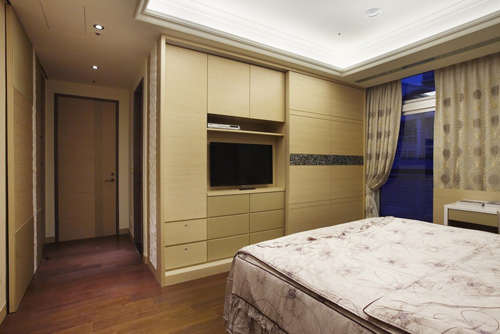 编辑推荐:将电视柜与衣柜整合后,重新以复合式手法一体化呈现,让空间更显俐落简洁。