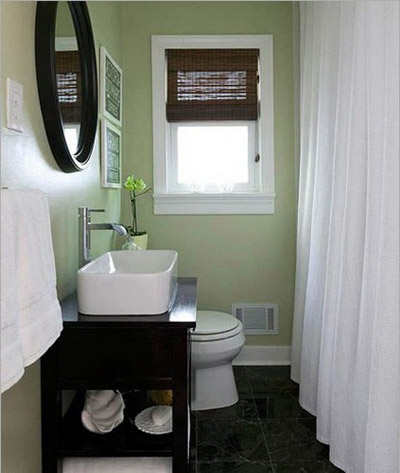 卫浴间空间不大,加上瓷砖色调较为深沉,墙面色调跟室内软装选用起来就要慎之又慎。清爽的绿色的墙面延伸到了整个室内空间,搭配白色软装空间自然清新,一点绿植的点缀继续增强室内清爽感,让绿色的清凉无处不在。