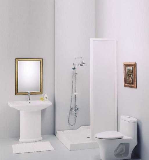 整体白色的浴室空间让人神经舒缓,一天的疲劳可轻松在此卸下。原木色的浴室镜框和座便器上方的装饰画给了空间不一样的色彩点缀,但原木色同样是最自然的色彩。一个狭窄的隔断墙就能简单实现浴室的干湿分离,特别适合面积小的卫生间设计