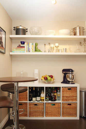 小厨房非常舒适,但它们往往没有足够的存储空间。怎样才能在有限空间当中组织更为有效的存储空间呢?传统橱柜和开放式货架是最通常的想法,但是要看在哪里挂货架,你需要什么规模的橱柜。一个很酷的想法是将平底锅等挂在桌子或厨房岛的上方。厨房岛 – 没错!你可以在里面存储相当多的东西!甚至是那些不需要冷藏的食物。隐蔽储物空间也很经典 – 你可以把那些从香料到餐具这些都先放起来,从而让厨房看起来更加整洁。如果你想创建质朴的外观,可以选择存储的编织篮。看看下面这些灵感吧,相信你能从中得到启发的!