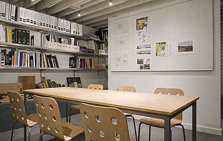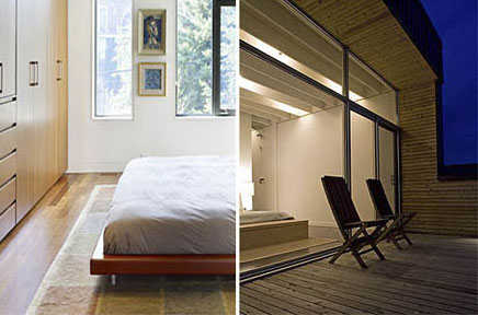 工作间的设计也很独特,是两个相互分隔的飘台,但是视线良好,又能沟通交流,电脑桌旁也有个大书柜,工作氛围很安静舒适。