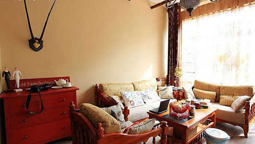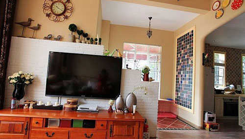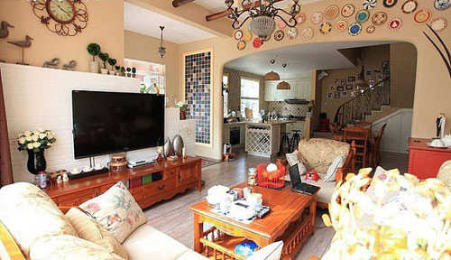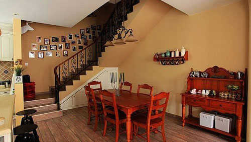 这套复式的地中海风格的家,空间比较大,但屋主还是喜欢多点装修,把空间搞得温馨一点。可以看到客厅里,几乎每一个角落都被照顾到,给人感觉有点玲琅满目。或许这样的丰富特色在设计师的眼里不可取,但是在一个热爱生活的心中,再丰富就是再温暖。