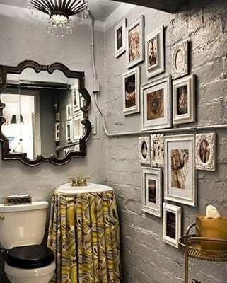 把美术展览馆带进卫浴,是不是个超high的决定!对于陈列而言,黑色的墙体是最好的选择,而画框和画布则以浅色为佳,能够弥补深色墙体提高卫浴间的亮度。喜欢在上厕所的时候研究麻雀和鸽子的体态不同,或是解密蒙娜丽莎的微笑,都随你!
