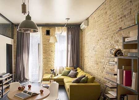 设计师为两位屋主和一只汪星人翻新这套基普小户型公寓,户型是正方形,设计师很紧密地安排各个功能区域,提高空间利用率,其灵感来自于原始人类围绕篝火生活的场景。