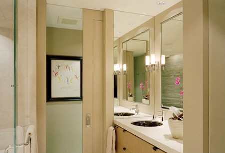 在你需要的时候拉开玻璃门,立刻给你一个更大的空间感。卫浴间与餐区之间畅通无阻,更显空间自由个性! 略带隐形门设计的移门处理,又给予空间更多可能性,带来奇妙的家居体验。