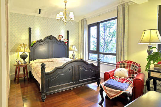 编辑点评:壁灯、台灯、床头柜,一左一右,相互呼应,巧添居室的对称美。盆栽的植入则增加居室的自然气息,营造舒适的居住环境。