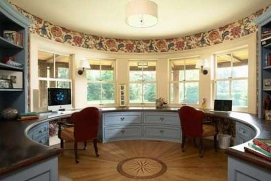 活跃你的思维,舍弃那只有一张古板的写字台的工作室吧,圆弧形窗台被巧妙的打造成书桌,沿着窗台整间房间的每一个角落都是你工作灵感的来源,在窗外美景的伴随下工作也变得异常的轻松。