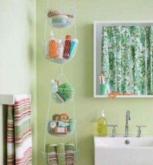 很多女孩子喜欢购买这种网状的收纳篮来晾晒内衣,同样也可以用在卫浴间收纳小物品。只需要一个挂钩的地方就可以,各种毛巾以及沐浴用品都可以轻松收纳起来。