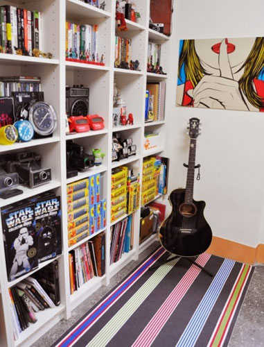 每个人对于自己家的期待及想像,绝不是在买房后才开始,很可能是在学生时代就开始萌芽。在那段急于想拥有自主空间的时期,卧室是唯一可以照个人想法改变的空间,在卧室里除了床及书桌外,书架是风格变化最多的家具,它不仅拥有收纳机能,也有展示功能,从书架上的摆设品即能看出屋主的个性,这也是 Jerry 在规划客厅家具时,最看重的一点。刚搬家的 Jerry,为了能在一周内把家安顿好,他利用上班交通时间规划家具摆设,午休时间上网挑家具,假日时拿着购物清单到 宜家直接采购,他只花了2小时就把大型家具买好,并坚持自己亲手组装,即使组装功夫花了整整一天,他说:”房子我没办法自己盖,家具我当然要自己组装,这样才有自己家的感觉“。