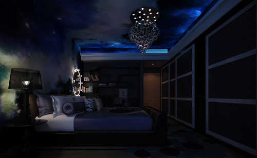 编辑点评:看到这个卧室,第一感觉是否觉得太不现实、很虚无的呢?这就是彩虹海的世界,也是陈朝辉设计工作室独有的私人定制。