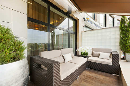 编辑点评:半封闭式的室外休闲区通过L型的沙发打造宽敞舒适的环境,沙发上清晰的凹凸纹理让空间更有质感。