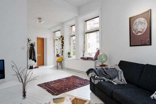 50平米小户也温馨 纯白地板明亮瑞典公寓