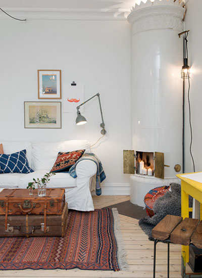 编辑点评:两个复古风的收纳箱相叠而成客厅的桌子,一箱两用,美观又实用;室内地板采用条状木地板,既简约环保又能扩阔视野范围和增强空间线条感。