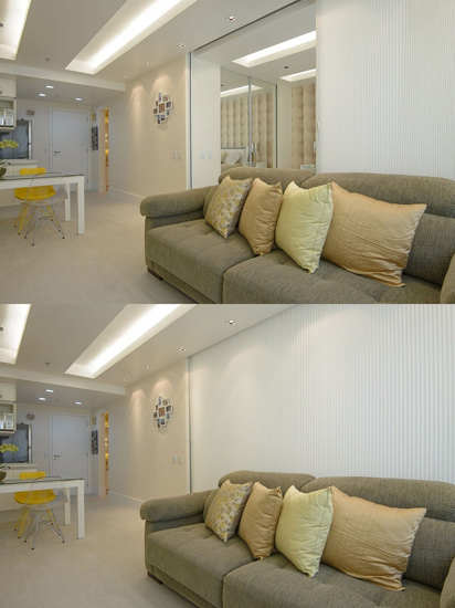 编辑点评:卧室与客厅之间采用可伸缩的塑料门作隔断,极大地节省了空间和成本,更可有效地保障卧室的隐私。