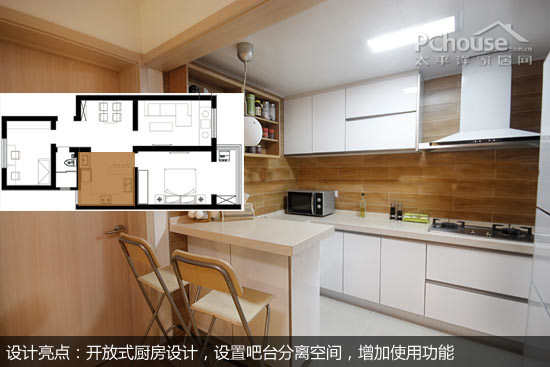 详细说明:小巧的吧台是很多人的最爱,利用家里的小角落制造一份难得的小浪漫。设计师设计隔断吧台少不了需要临时放置酒水、杯子等物品的地方,利用厨房左角落带来更好的收纳。