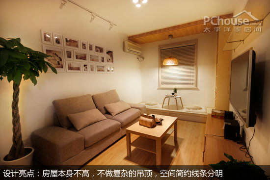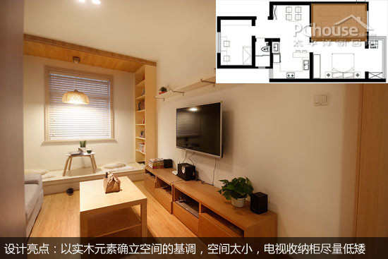 详细说明:客厅空间太小,实木元素定下了整个基调,电视背景墙非常简约,尽量横向拉伸空间;收纳柜非常低矮,同样为了减低高收纳对空间的压迫感。