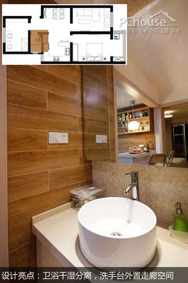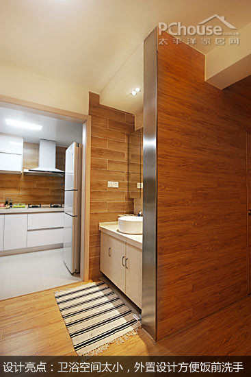 详细说明:卫浴干湿分离,把洗手台外置在厨房过道上,不仅为卫浴争取到最大的使用空间,而且实现干湿分离目标。