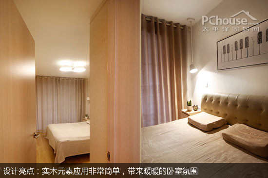 详细说明:以米黄色软装作为卧室空间的基本元素,整体格调非常简约。阳台空间以窗帘隔断,保证私密性,也方便把阳台纳入卧室空间使用。
