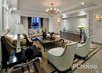 四、家具的选择,与硬装修上的欧式细节应该是相称的,选择深色、带有西方复古图案以及非常西化的造型家具,与大的氛围和基调相和谐;