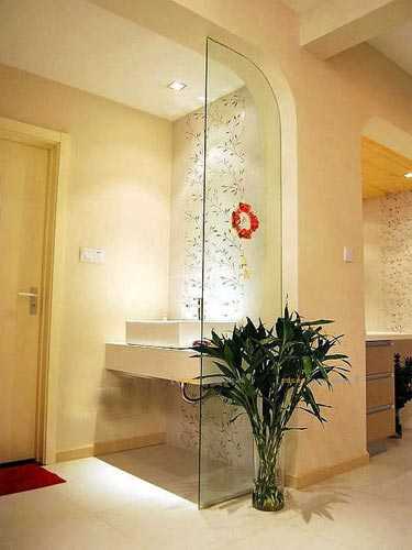 该案例为旧房改造,原装修为楼盘赠送,质量及细节不能达到业主要求。重新设计后使用了环保的仿大理石砖和艺术墙漆。结合后期安装的中央空调与现场制作的木器尺寸间需要更加仔细的配合设计才能更加吻合。
