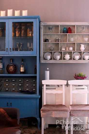 在房间里转一圈,你不得不佩服这个女孩的用心,脱俗的浅紫灰墙面、白色的法式家具,偶尔跳进视线一抹亮蓝,旧鸵鸟皮慵懒铺在沙发一角,它们不做作,自然组合出屋内最美妙的风景。