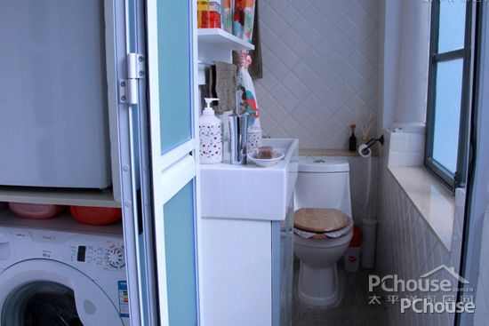 白色的柜体,搭配样式清新的洗漱用品,这个空间充满着春的气息,也洋溢着新婚夫妻特有的甜蜜情调。