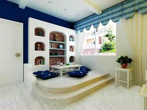 同样是地中海的榻榻米装修,还有很强的收纳功能哦!