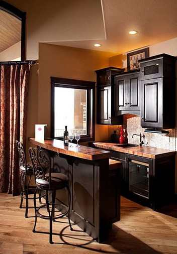 以木色打造的小酒吧,自带暖度,格外温馨。吧台面带有不规则的延伸设计,让台面更为宽敞的同时,也营造美观。小酒吧虽然小,但处处饱含收纳空间,出了柜体空间,墙壁上的酒架设计则最最出彩,整齐收纳的同时,也作为了一种装饰。