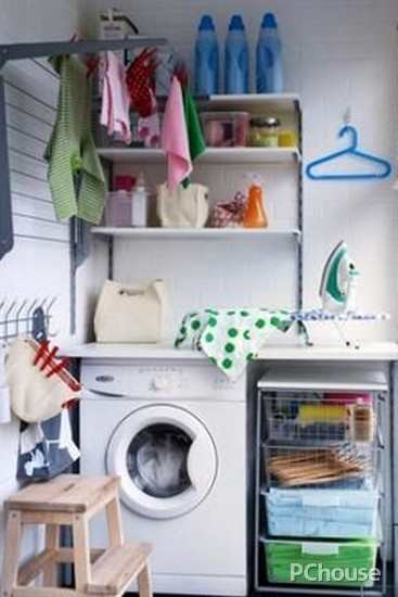 阳台上若能正好摆下洗衣机,把它布置成晾洗衣服的场所也是个不错的选择。两根竹竿挑衣服的时代已经过去,自动升降晒衣架正在流行,一条牵引绳,就可晾挂和收取衣物,非常便利。