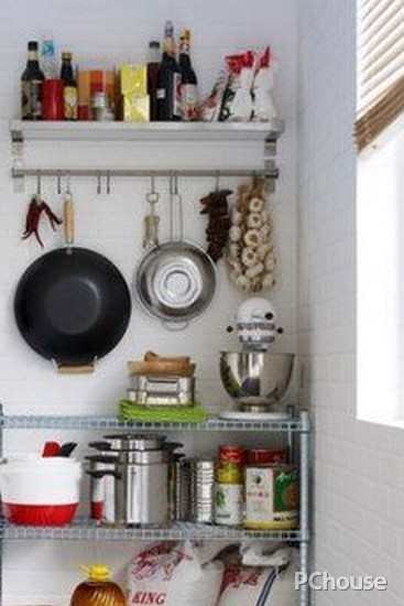 阳台紧靠厨房的情况下,这种问题会比较明显,这时,我们可以利用阳台的一角建造一个储物区,存放蔬菜,食品或不经常使用的餐厨物品。