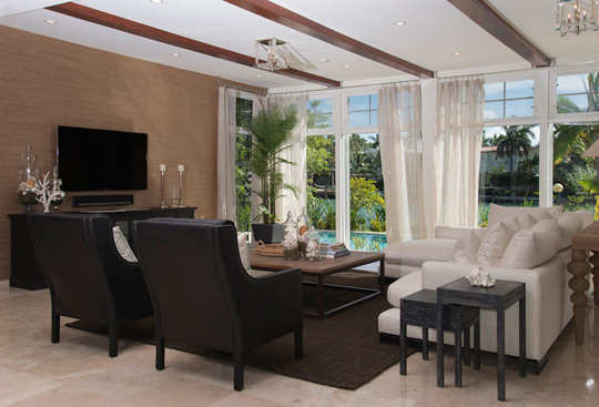 编辑点评:大块的透明落地窗代替了墙壁,它所具有的透明度,提供照明,为整个空间带来了不少的采光,也在视觉上加大了空间的宽敞度。将室内外融为一体,尽享舒适安逸的大空间。(点击详细装修设计案例)