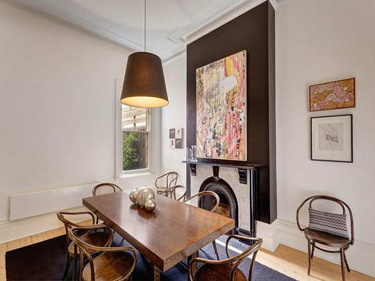 编辑点评:木质的餐椅中规中矩的摆放,给人一种严肃感。而墙壁上的多彩壁画散发颜色魅力,活跃居室氛围,让中规中矩中和俏皮可爱合二为一。