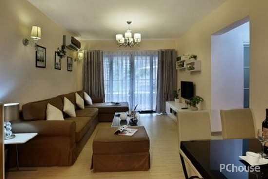 既然要打造成清新的简约风格,那么整个家居的色彩就已经确定了——白色。在客厅中在布置上白色的沙发,茶几和白色的电视剧,基本上就将客厅布置完成了,当然要体现出清新的感觉。