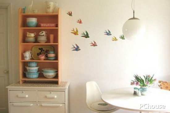 小巧玲珑型的简约造型,带点欧式休闲风格的餐厅。简约到不能再简约,无隔断,无橱柜,造型简单颜色单一,吊灯也是造型朴素的结构,最适合喜欢清净的人。
