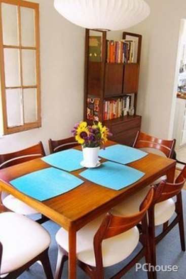 兼具餐厅与读书角的双重功能,书柜餐桌椅造型不夸张,饰品不多,色调很温馨,文艺型青年的简约风首选。现代风格比较突出,吊灯和餐桌椅的设计也比较人性化。