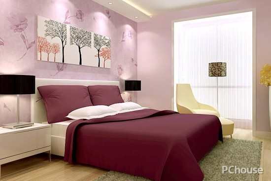 卧室大气与雅致淡紫色配以高贵典雅的水晶圆灯,尽现温雅气质。考虑到面积比较小所以要求整体空间的实用性,设计则毫不犹豫地以现代简约风格为主。