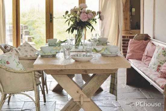 实木的桌凳,玻璃的桌面,显得自然而通透,肆意绽放的花朵,透着田园的清新与素雅。在天气美好的日子,这里真是自在享受的好地方。