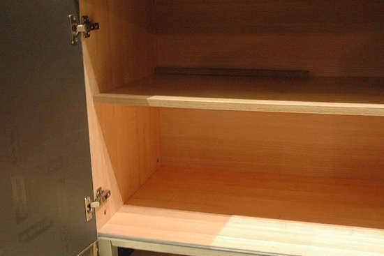 目前市场上有16毫米、18毫米等厚度规格的板材,厚度不同成本相差很大,仅此一项,18毫米厚的比16毫米厚板材成本高出7%,18毫米厚板材做出的橱柜使用寿命等能延长一倍以上,保证门板不变形,保护台面不开裂。消费者看样品时一定要认真了解材料的构成情况,做到心中有数。