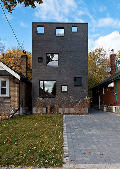 设计提要:位于加拿大多伦多的Charcoal House,坐落于一片狭小的土地上。随意组合的方形窗户镶嵌在房屋的正面,一个隐蔽的大门位于建筑的角落……这些设计元素不但使人们很难把Charcoal House和一般的家庭住宅联系在一起,而且欺骗了人们的眼睛,使人对房屋的楼层规模产生曲解,猜不出里面究竟有多少层。这不是一栋宽敞的住宅,但前卫的设计想法正体现着设计师在探寻另一种可选择的居住空间和实质的改变,它为多伦多人提供一种新的现代化生活方式的尝试。