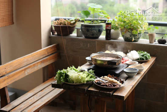 搭配TIPS:随意摆几盆植物,再放上一张条桌,花园长椅,然后你就可以在你的小花园里,吃一顿活色生香的火锅了。