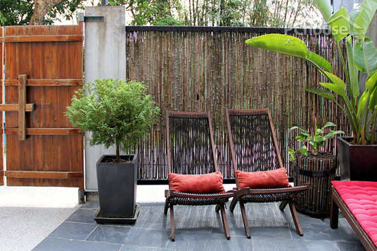 搭配TIPS:古旧的木门和一排一人高的竹篱笆,加上竹子捆成的奇异花盆,这个小院子带给人的舒适随意的感觉,仿佛记忆里外婆家的样子。