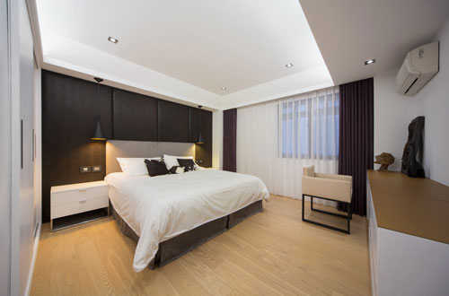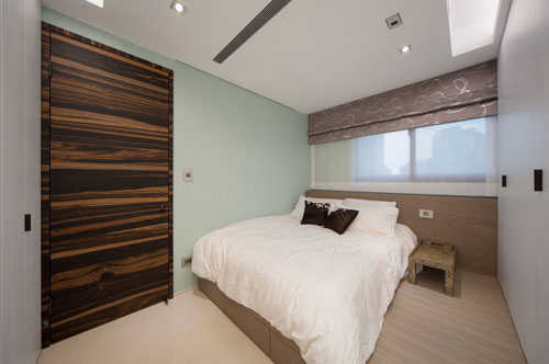 编辑点评:兼顾客房功能的卧榻床体可做为夫妻与好友来访,泡茶、谈心角落,立面柜体容纳大收纳空间。