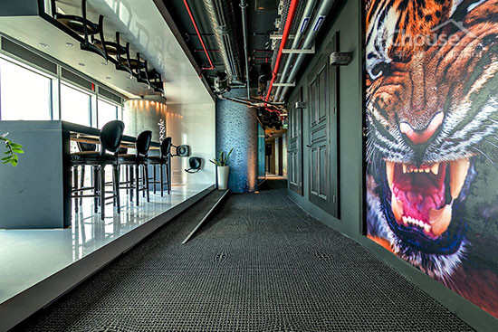 办公室以多样的主题办公空间为主,每个空间被设计成不同的面貌,每一区的空间主题都是根据以色列当地的特别景致所设计的,有些走廊上会出现狭窄的鹅卵石街道,有些地方拥有冲浪板、假草坪、攀爬的织物,甚至仿照沙漠景观设计的会议区。前台接待区则是拥有波浪起伏的木板地面与墙面,让人不禁联想起特拉维夫的港口设计。设计语言的丰富也说明了以色列作为一个国家和民族的多样性。