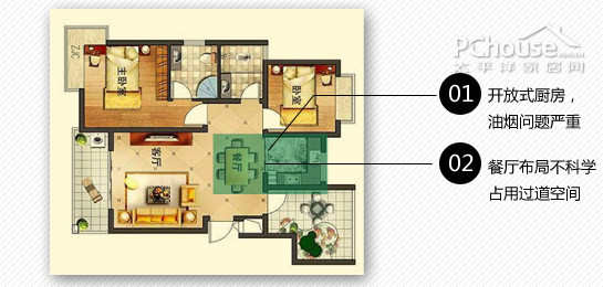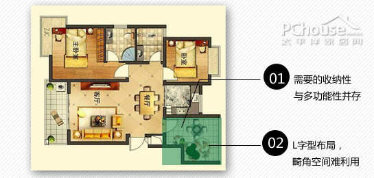 2、进入主卧的短玄关没有任何的家具或收纳设计,浪漫空间严重。
