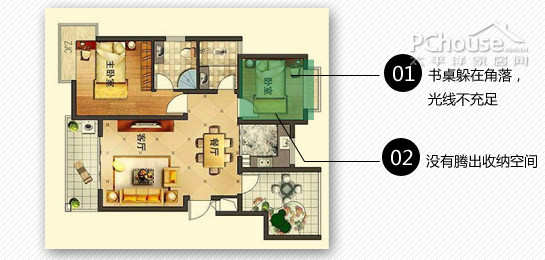 1、因书桌靠近窗边墙角光线不足,书桌与床对调,调整阅读区域的光线。